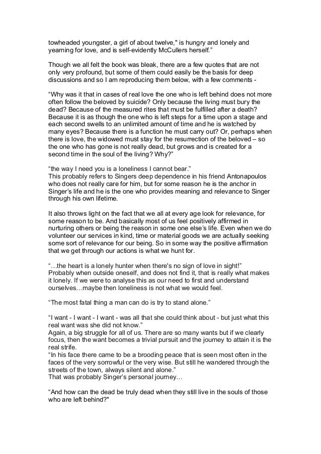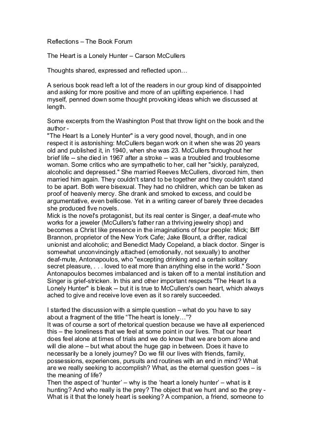 That is until one of them moves away to some sort of asylum due to craziness. Heres one such review. Coming of Age in The Heart is a Lonely Hunter.